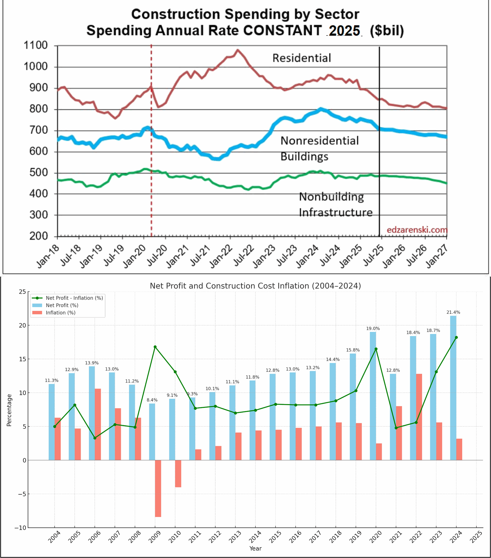 NEW ENGLAND - September 7, 2025. Ed Zarenski (www.edzarenski.com) reports September's headline construction data was the year-to-date (ytd) comparison. Through July data, ytd2025 is -2.2% compared to ytd2024. But where is it headed. Watch for this. Last year spending was increasing until it peaked in October. This year spending is falling and will continue to fall into Q3. Every month now the ytd spread gets worse, because 2025 is decreasing and 2024 was increasing. .